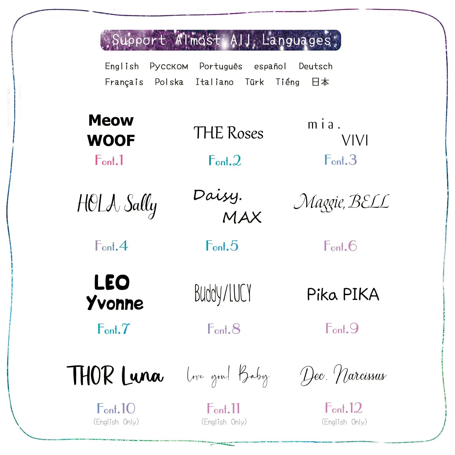 Admite casi todos los idiomas, seleccione el estilo de fuente que desee o decídalo nosotros.